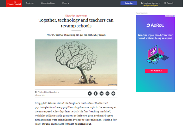 Em sua matéria de capa sobre tecnologia e educação, a revista fez uma análise aprofundada sobre o conceito de personalização do ensino – desde sua origem – e elencou premissas para que a personalização possa trazer resultados concretos para o futuro da educação. Dentro do artigo, a Geekie foi referenciada como um bom exemplo de empresa voltada para a educação. Leia aqui.